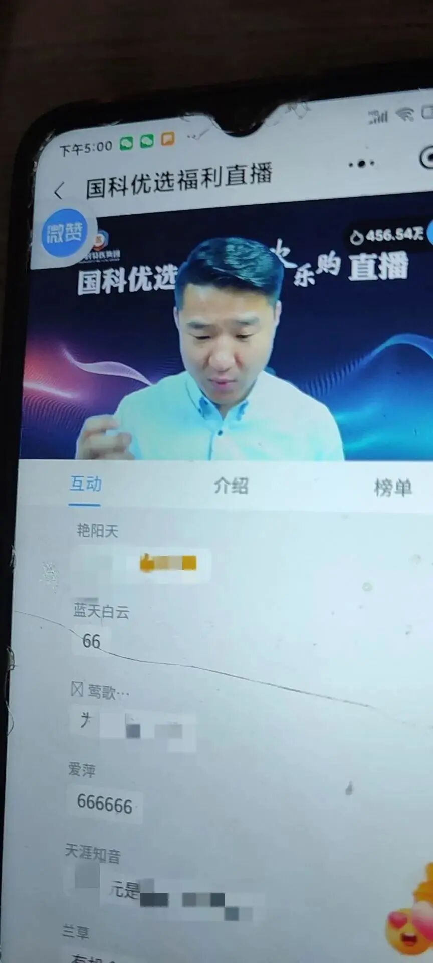 前天看见有人拿着手机看微信直播,直播里面是卖保健品的。