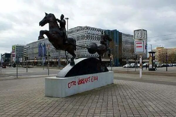 纪念马德堡半球实验的雕塑