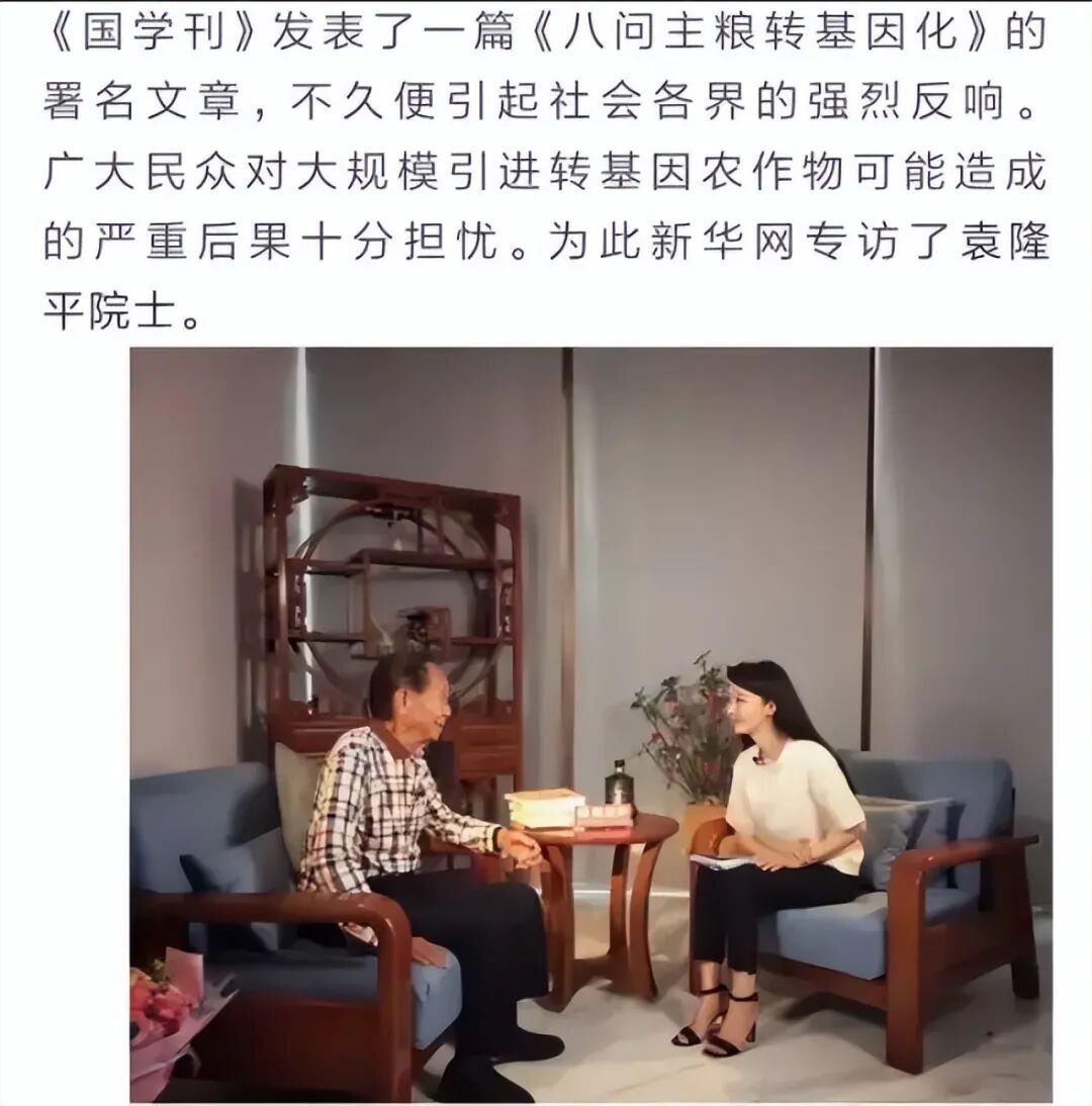 我最大的遗憾,就是没有在袁隆平院士去世前再采访老人家一次。本来我和朋友已经联系好了对方,结果袁隆平身体不适住院,这个事情就耽误了下来。不过袁隆平是绝对支持转基因应用的。