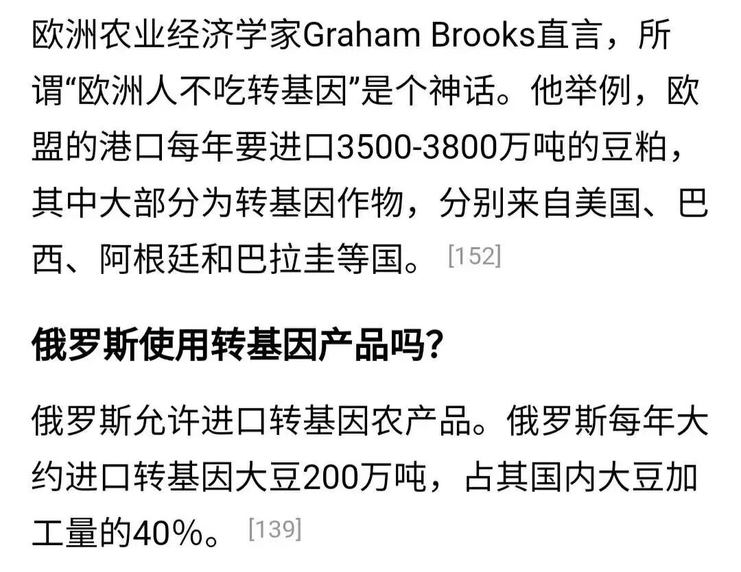 自1971年以来,全球认可转基因安全性的sci实验论文为10万篇以上。提出质疑的仅为32篇,而且全部是很久之前发表的,作者在后续研究中也全部推翻了原结论。发表这些论文的作者和机构来自于全球60多个国家和地区,意识形态和利益都不同,甚至彼此敌对,不可能集体造假。比如俄罗斯国家科学院就认为转基因生物是安全没有任何争议的。俄罗斯不可能和西方联手造假。而且时间跨度为51年,这么漫长的时间,参与的科学家和科学机构如此之众多,如果真的存在问题,不可能被遮掩住。