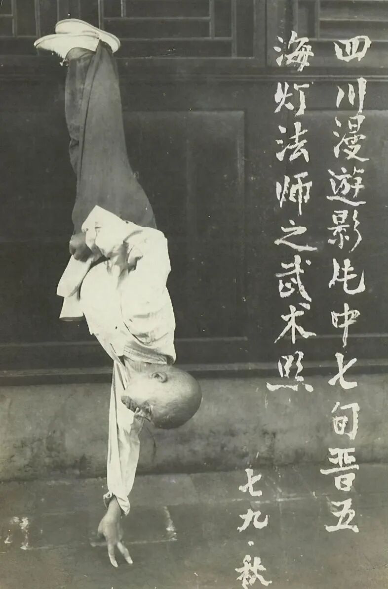 1979年香港人拍《四川奇趣录》,海灯法师用布带拴足摆出二指禅的动作,这还能勉强说是他年事已高做不来,是权宜之计。但是既然是真高僧,就应该一点假都不去做。动作做不了就做不了,老老实实的,无论任何人请求他去假演都应该拒绝,坚决不去搞虚假的一套,不能欺骗观众。好吧,算是为艺术牺牲一下,偶尔一场做戏可以原谅。但是,关键问题在于,之后这样的“艺术性虚构”越来越多,他也居然直接坦然受之,随波逐流矣。