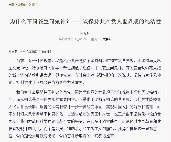 可叹我们破“四旧”破了几十年,这些封建愚昧还没有被彻底根除,到底是谁的责任?如果是普通人愚昧,还情有可原。但是知识分子和“某些人”也如此愚昧,影响就显得特别恶劣。因为他们的一言一行都起到示范作用。“上梁不正下梁歪”是也。