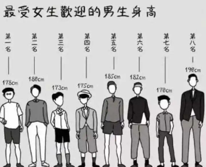 中国南方地区很多女士择偶的一个基本标准是,男生的身高不低于170公分。北方的标准可能要到175公分以上。如果低于这个标准,即使对方家财万贯、才高八斗,很多女生都不会看第二眼。