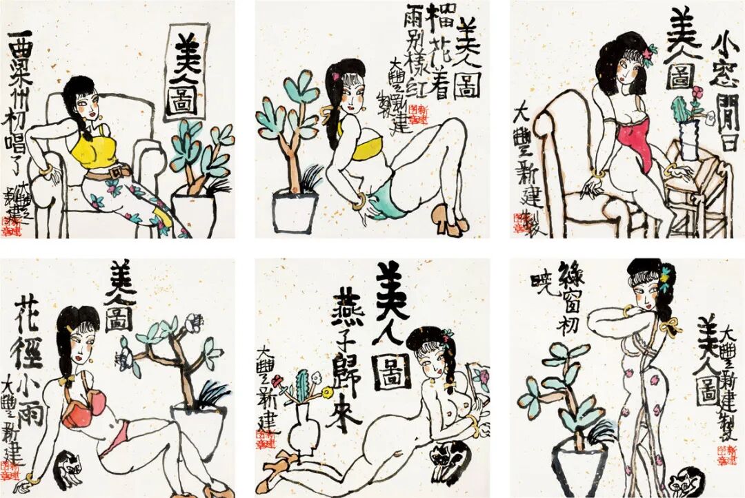我跟朱新建其实不熟,大部分印象也是通过朋友聊天听来的。早先是南方一些作家朋友认识他,说有一个南京画家叫朱新建的,很能聊,话头起来都不给别人说话的机会,一聊能聊好几顿饭。叶兆言、苏童、陈村和陈丹青都认识他,说他画儿画的好,水墨有人画过,春宫有人画过,合在一起还从来没人这么画过。