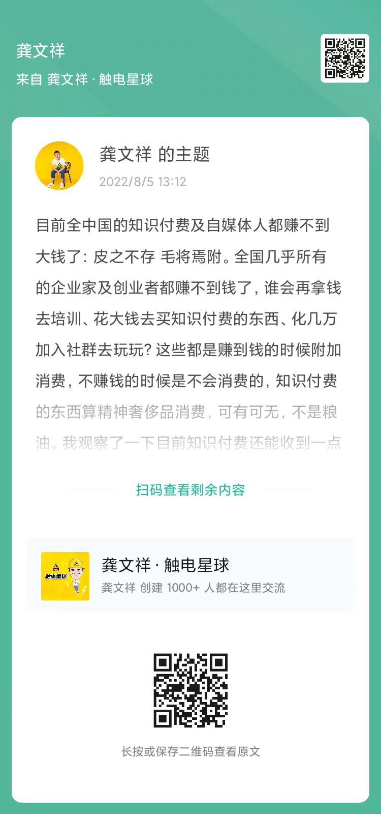 全国几乎所有的企业家及创业者都赚不到钱了,谁会再拿钱去培训、花大钱去买知识付费的东西、化几万加入社群去玩玩?