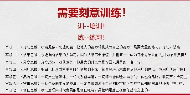 其实七个点的话,我们大家都知道,从行动思维到结果思维、到分享思维、到用户思维、到品牌思维、到流量思维,到信任思维,是一个进阶体系。