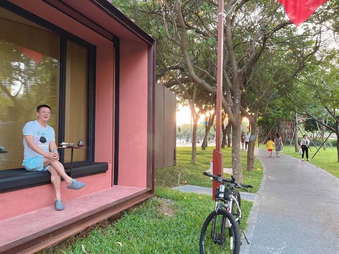 我骑行的时候,就发现,我家楼下,就开了一家风景不错的小茶馆。