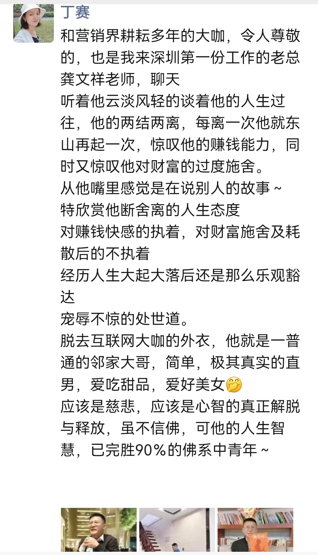 @丁赛:和营销界耕耘多年的大咖,令人尊敬的,也是我来深圳第一份工作的老总龚文祥老师,聊天。
