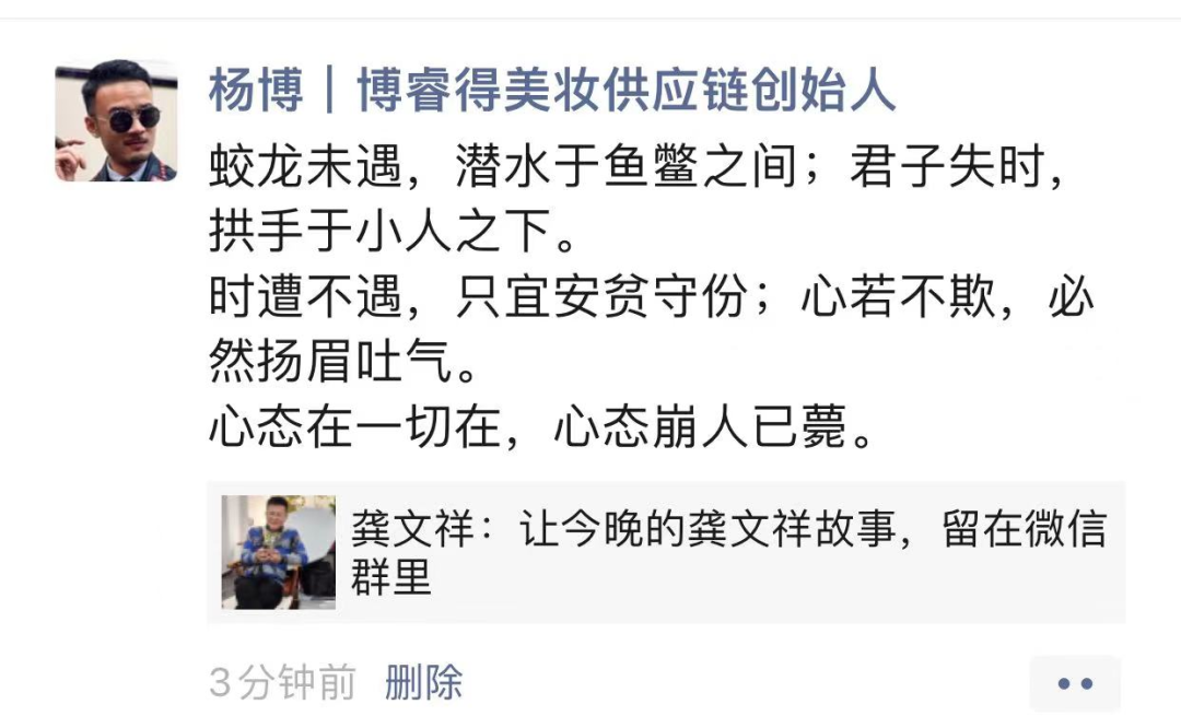 @龚文祥微信群群友:人一定要穷一下,失败一下,才知道身边,谁是人谁是鬼?珍惜落魄的日子,因为只有落魄了看见的,才真的是真相,比金子还真。