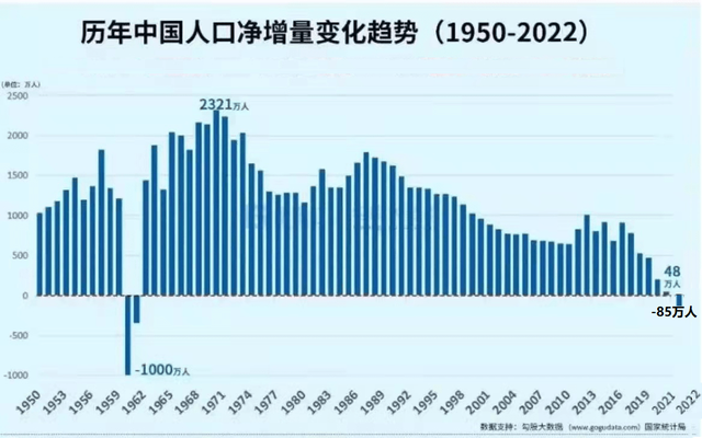 3、2023年中国人口开始下滑,几千年来中国第一次人口自然下滑(以前是战争等因素)。