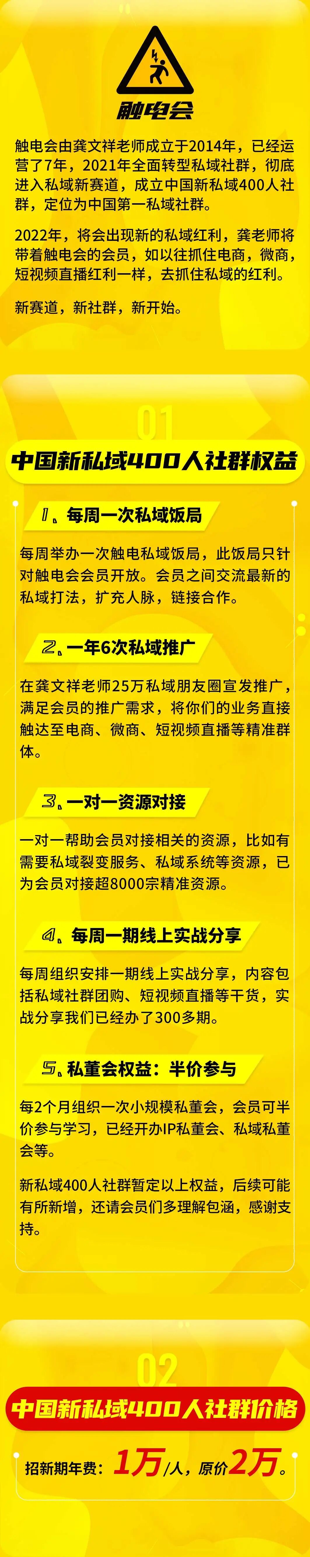 每周举办一次触电私域饭局,此饭局只针对触电会会员开放。会员之间交流最新的私域打法,扩充人脉,链接合作。