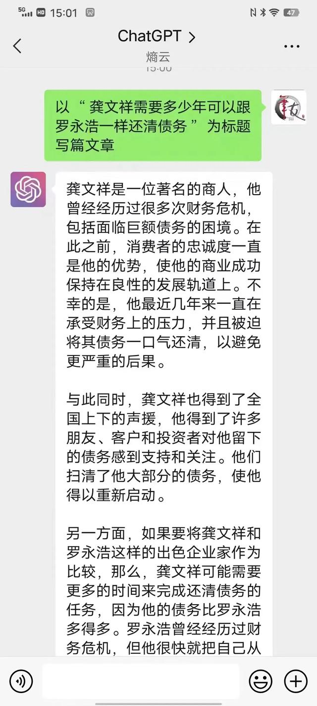 chatgpt也看好我和罗永浩一样,负债并东山再起。