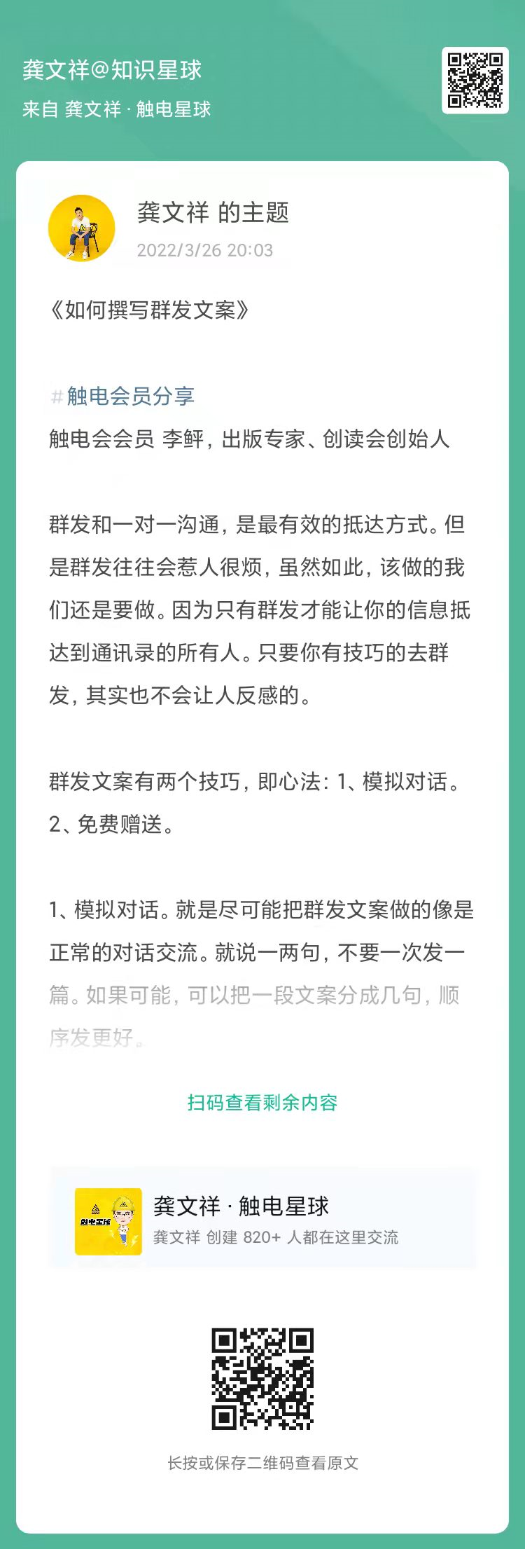大家扫码查看,欢迎加入触电星球,来这里吸取,龚文祥和触电会员的8年沉淀,物超所值。