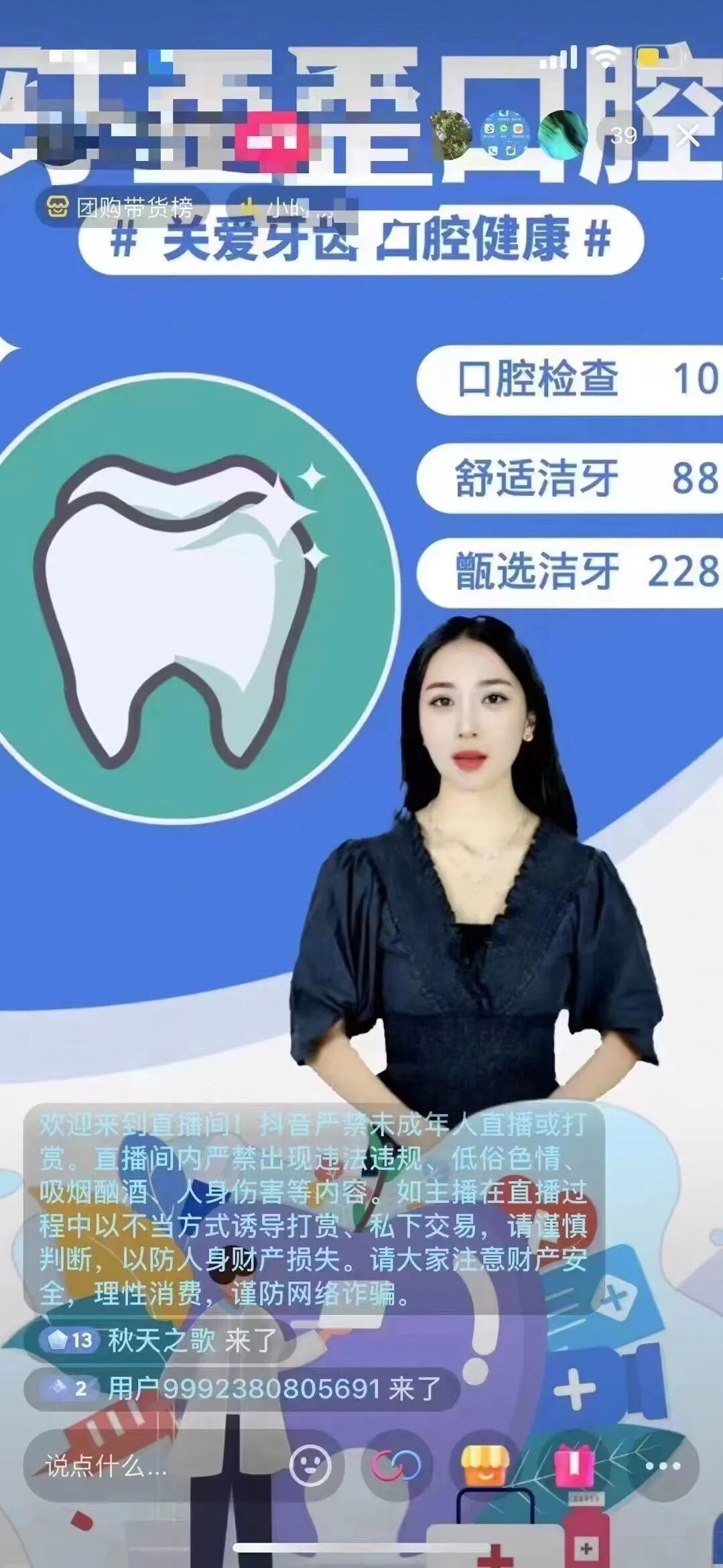 口腔行业AI数字人直播,数据多,实时在线人数39人!开播时长已经超过45小时!