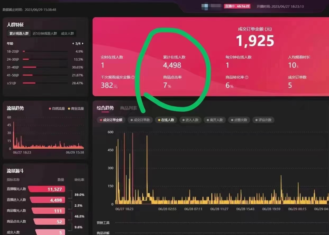 带货数据也是可观!成交5单,近2000的GMV。