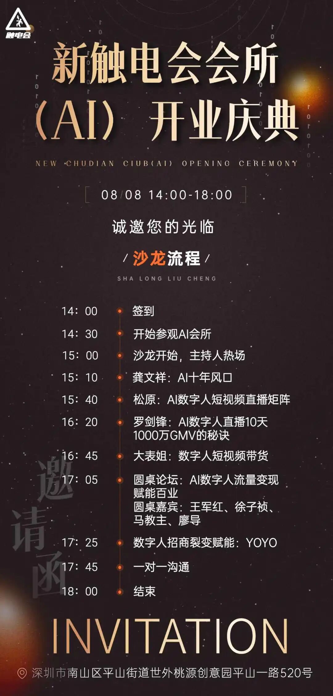 下周二,我的新触电会所正式开业,首届龚文祥数字人沙龙流程。