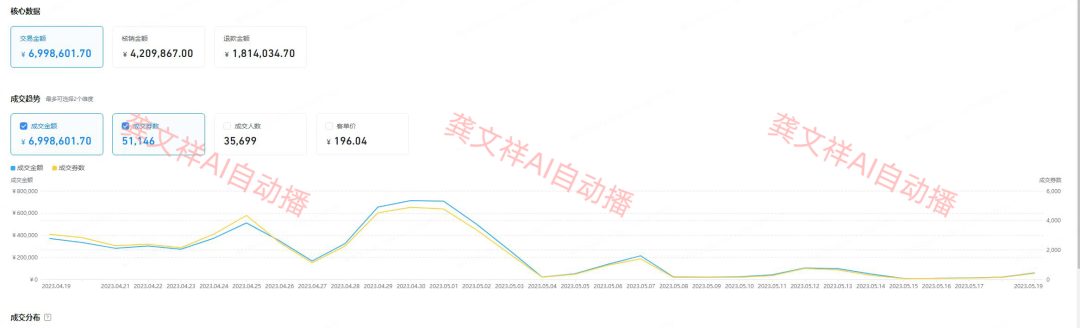 这个是当时我们用ai自动播矩阵做出来的业绩,实实在在卖的600多万GMV,核销也达到了400多万。