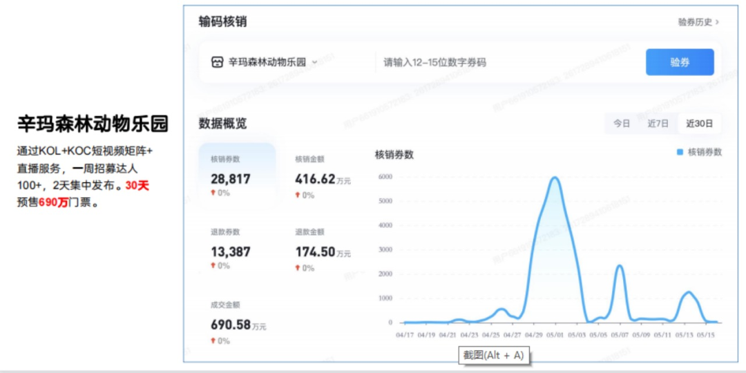 我们通过AI自动播系统,首次帮助了石家庄当地的游乐园辛玛森林动物乐园,做到了月gmv 690.58w。