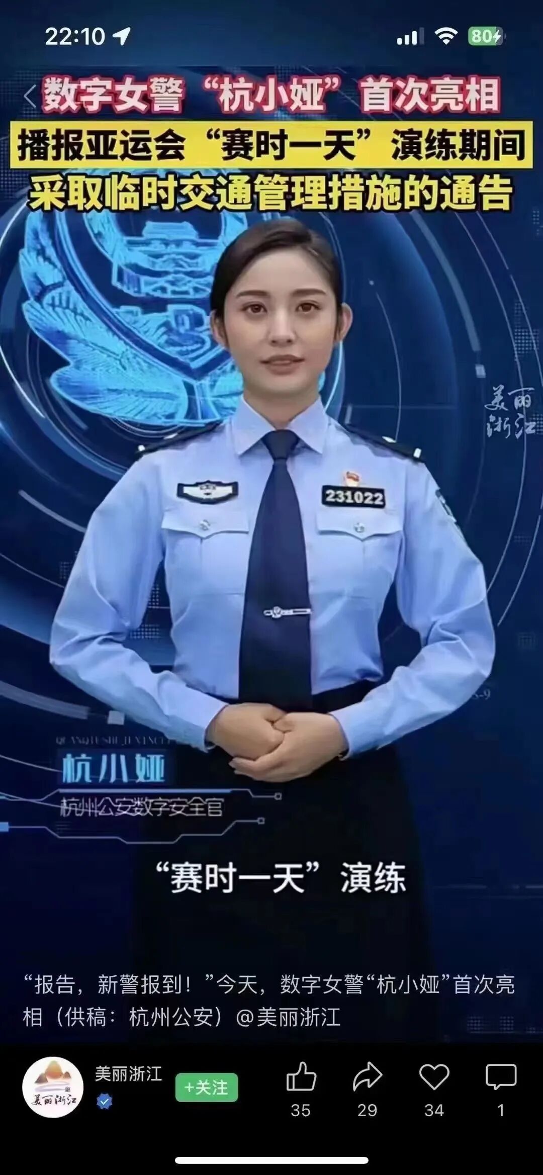 数字女警,“杭小娅”首次亮相杭州亚运;无锡消防,已经和数字人成为战友。