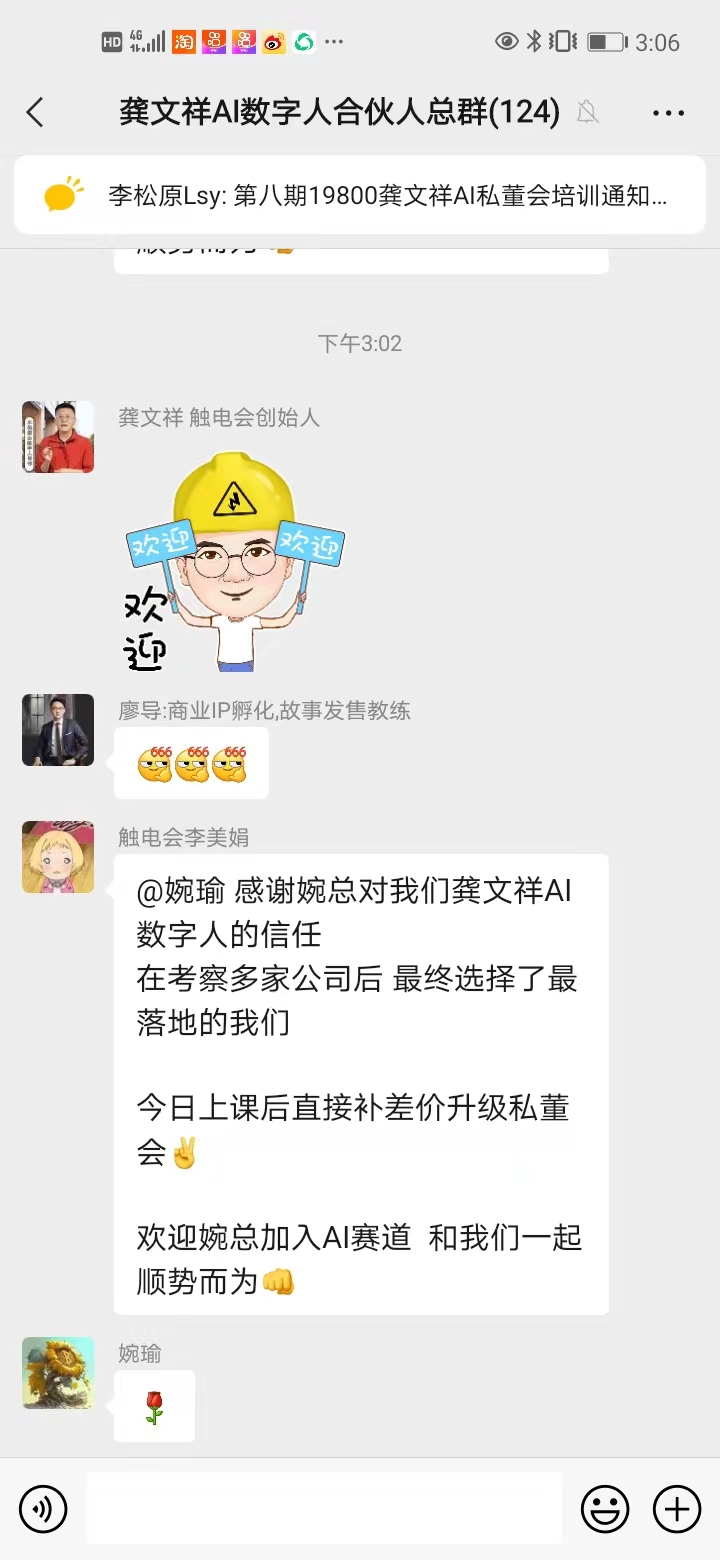感谢婉总对我们龚文祥AI数字人的信任,在考察多家公司后,最终选择了最落地的我们,今日上课后,直接补差价,升级合伙人。