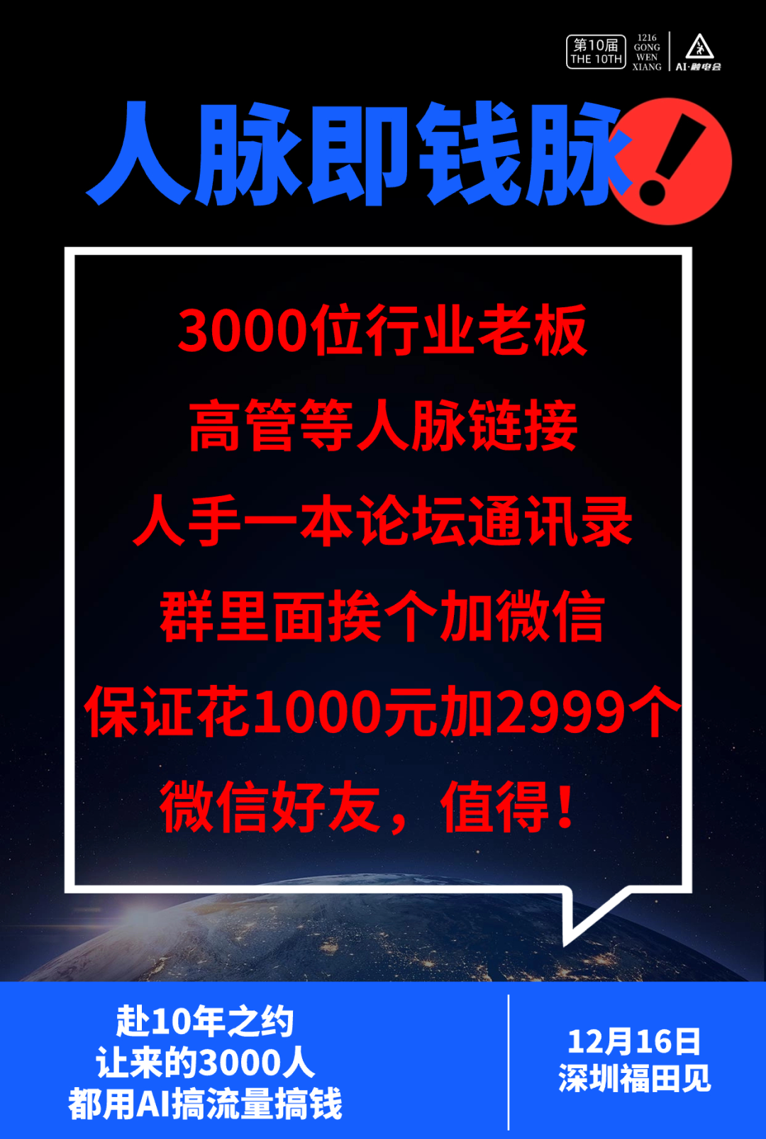 规模:3000人 (这是全中国首届3000人规模的AI电商变现论坛)