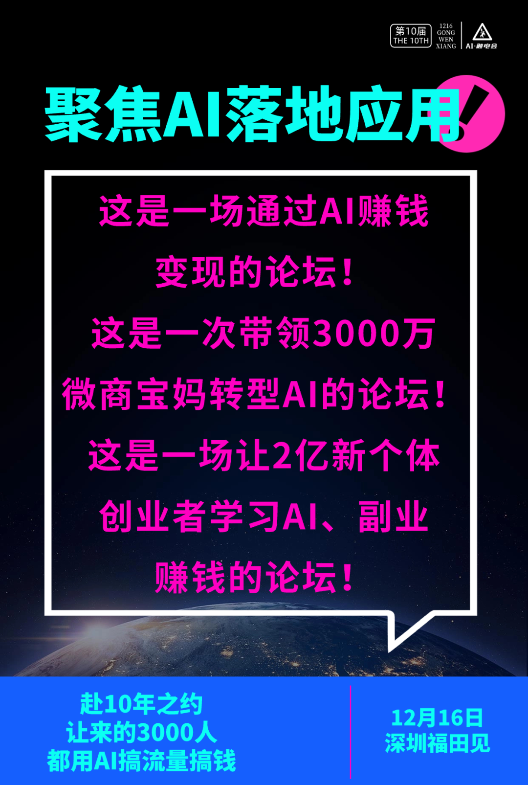 在这个极端不确定的时代,你来参加我的3000人论坛,就是入了AI赛道,未来30年,再也不用转型!