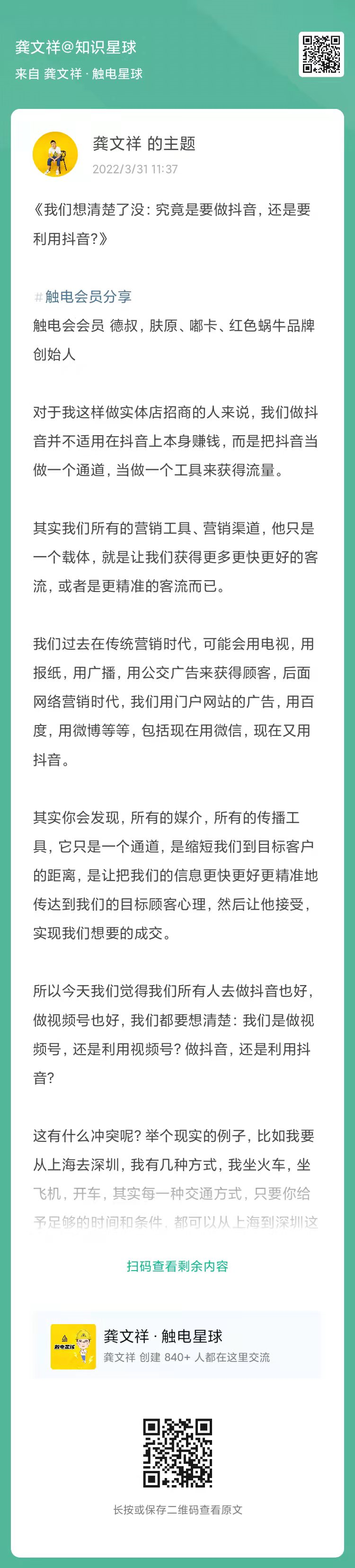 所以今天我们觉得我们所有人去做抖音也好,做视频号也好,我们都要想清楚:我们是做视频号,还是利用视频号?做抖音,还是利用抖音?