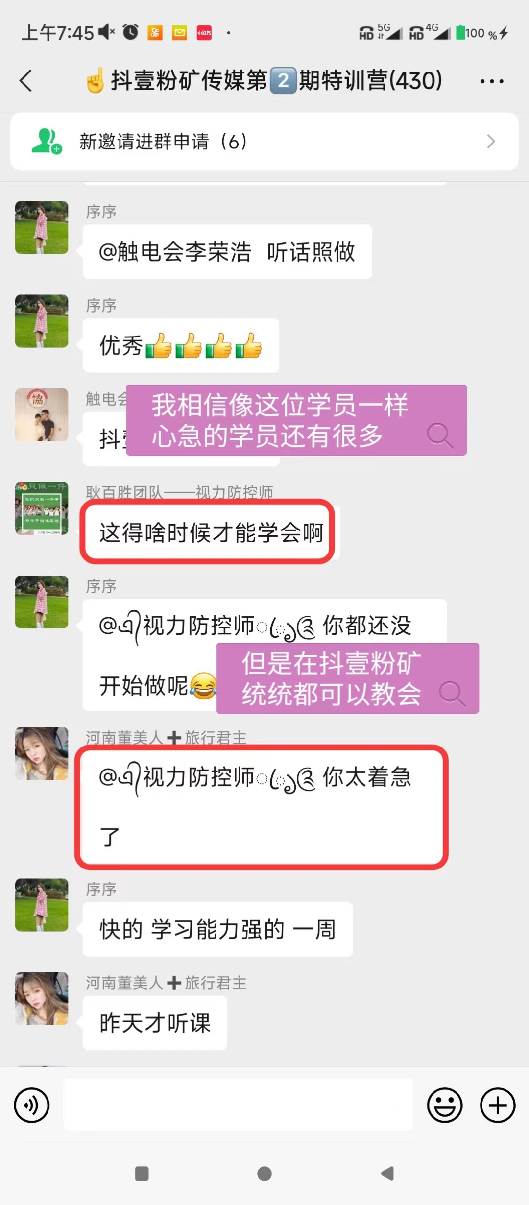 这位学员50多岁,刚进入抖壹粉矿商学院。心态很急——“这什么时候才学的会呀”“看不懂呀”“难死人了”这些反馈都是这位学员刚起步时候的真实心态。