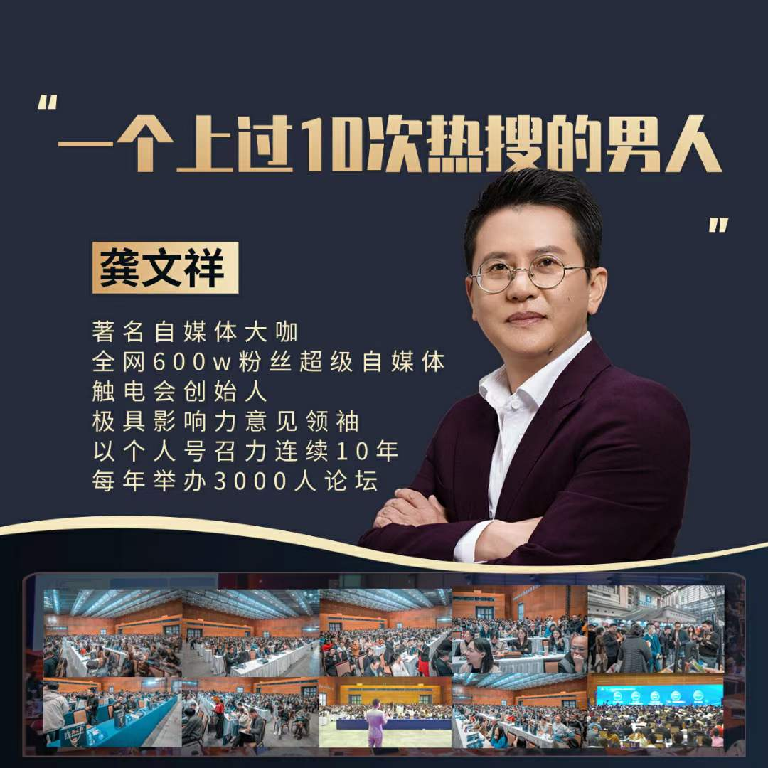 龚文祥,著名自媒体人,全网粉丝 500 万。自媒体创业 14 年,前 7 年是中国第一电商自媒体,后 7 年被誉为所谓“中国微商教父”。2023 年,开始转型为 AI 电商自媒体,从 AI 数字人直播赛道起步,后进入AI图文带货赛道,将新触电创业公司定位为一起 AI 创业大学!东山再起的传奇人物,一个上过10 次热搜的创业者!值得一提的坚持是,我连续 10 年以个人名义举办 3000 人论坛。