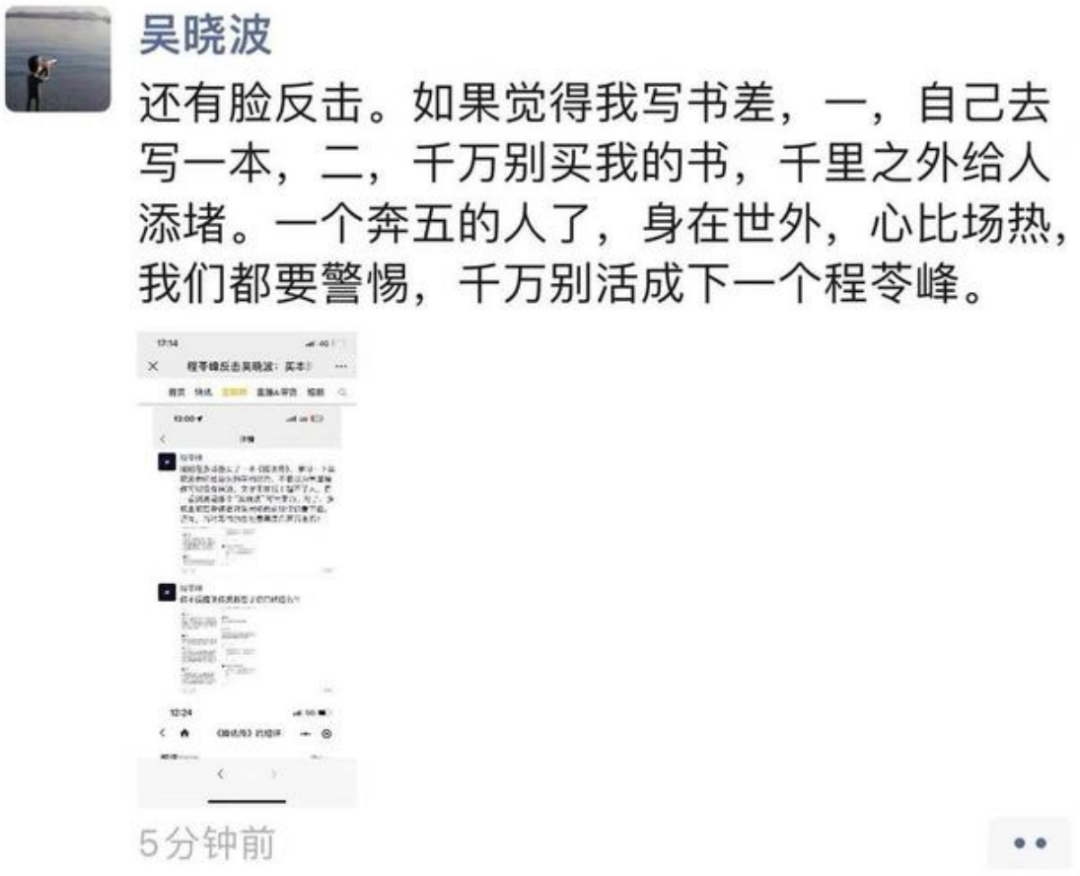 我觉得,吴晓波老师跟程苓峰的朋友圈骂战,大家的争议就是,一本书是不是一定要自己写的问题?