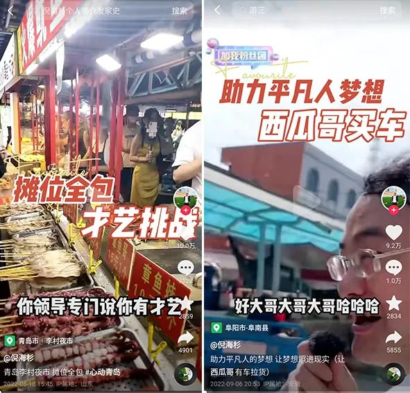 第二个阶段,他做了一个事情叫户外直播,他就是经常去各种的户外,碰到谁摆地摊的,特别是底层人物,然后就帮人家买单。