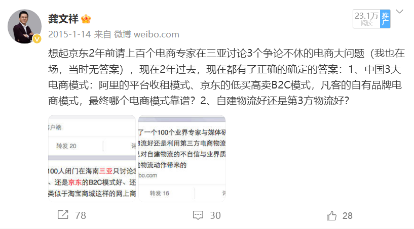 后来大家已经看到结果了,京东的崛起,就是因为他把自有物流建立起来了,送货更快,品质更有保证。