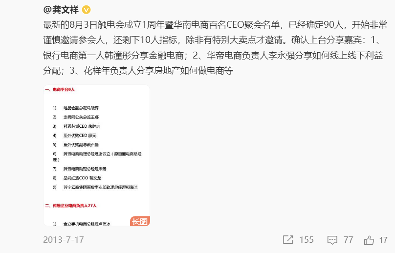所以,他为了这一件事情,专门在三亚开了一个美名其曰媒体见面会,实际上是征求大家的意见,招了100多个电商专家过去。
