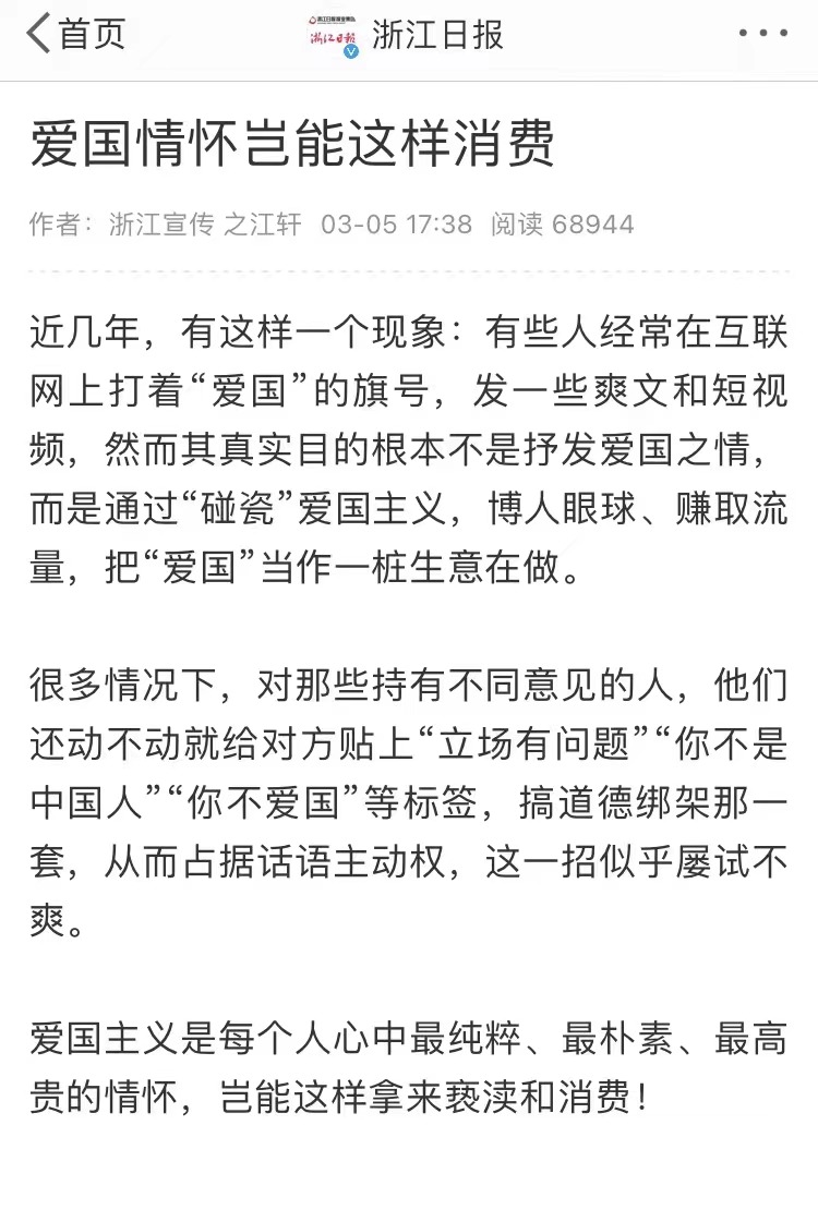 前几天,官方已经发话,把“爱国”当作一桩生意在做,令人不齿。