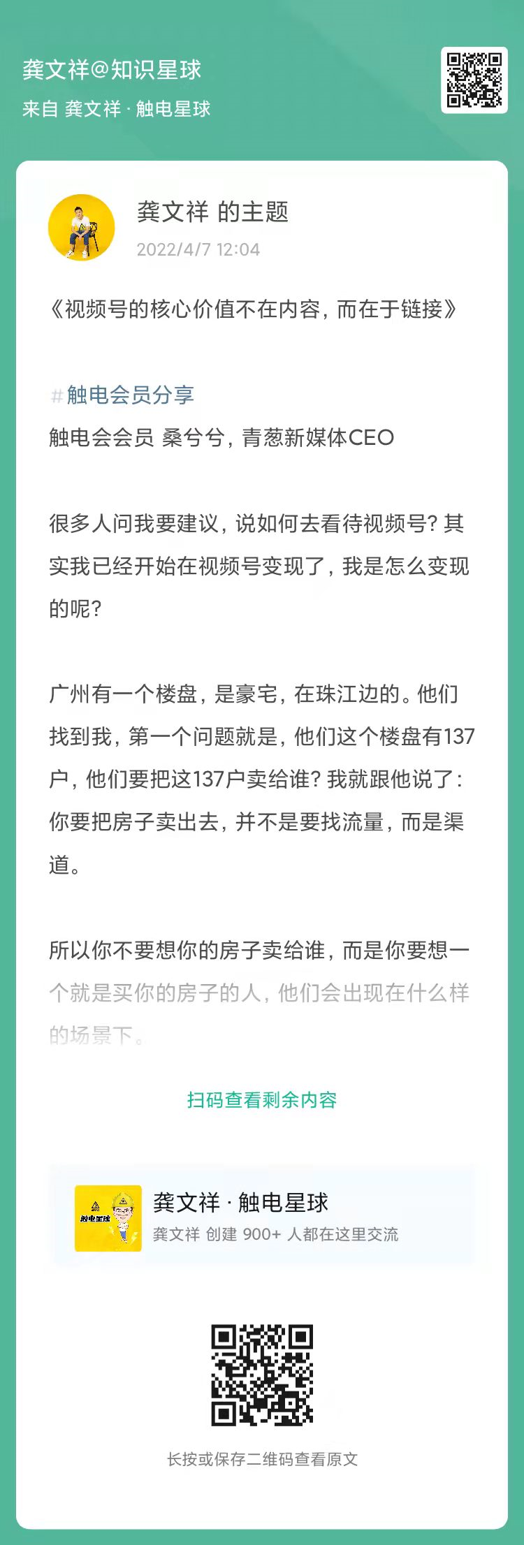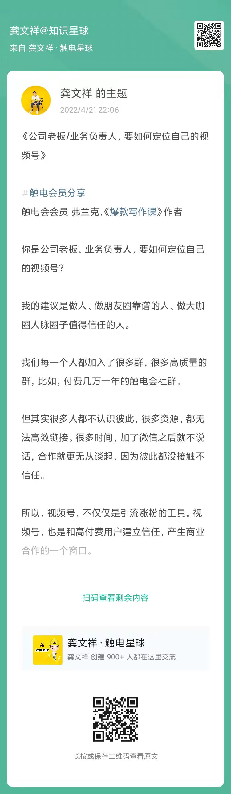 我挑选了,触电星球里面,触电会会员关于如何做好视频号的一些思路、实操,分享给大家。