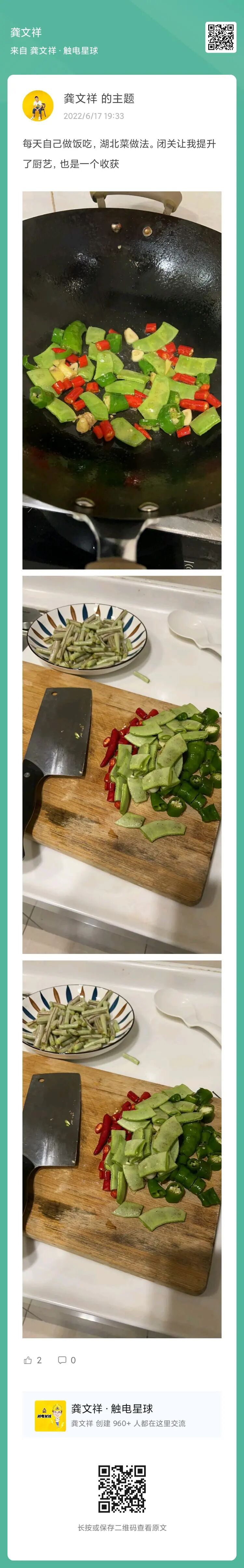 我现在每天自己做饭吃,湖北菜做法。闭关让我提升了厨艺,也是一个收获。