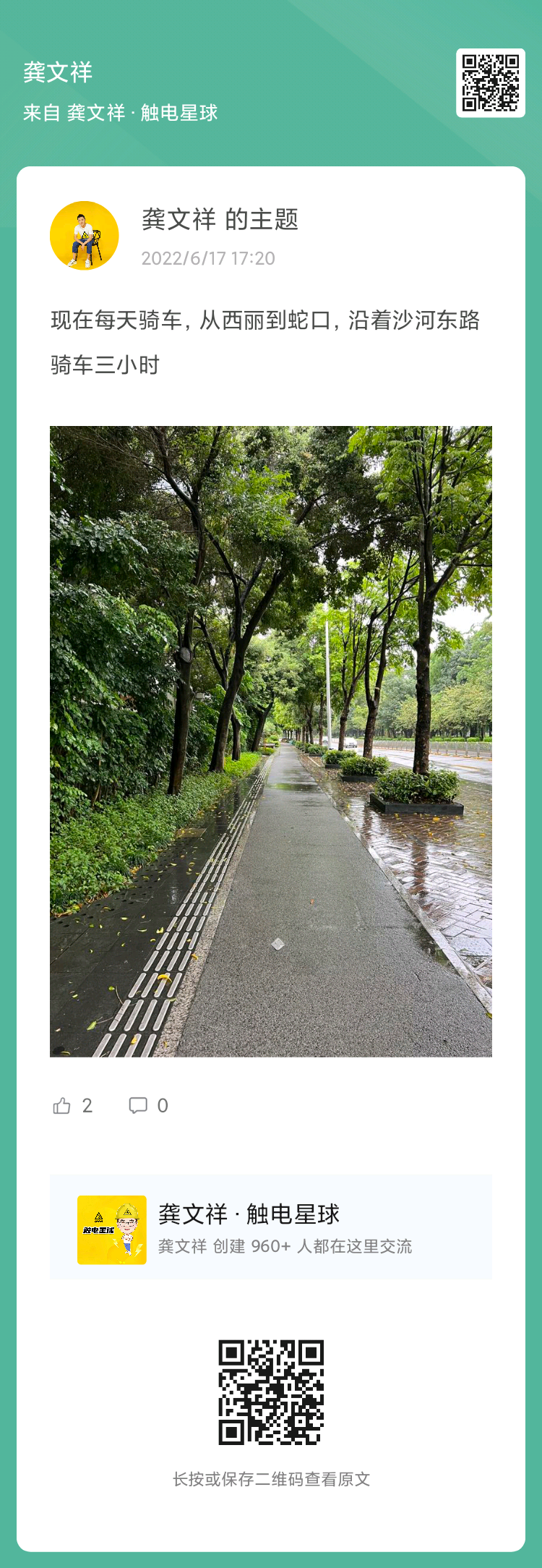 现在每天骑车,从西丽,骑到蛇口,沿着沙河东路,骑车三小时。