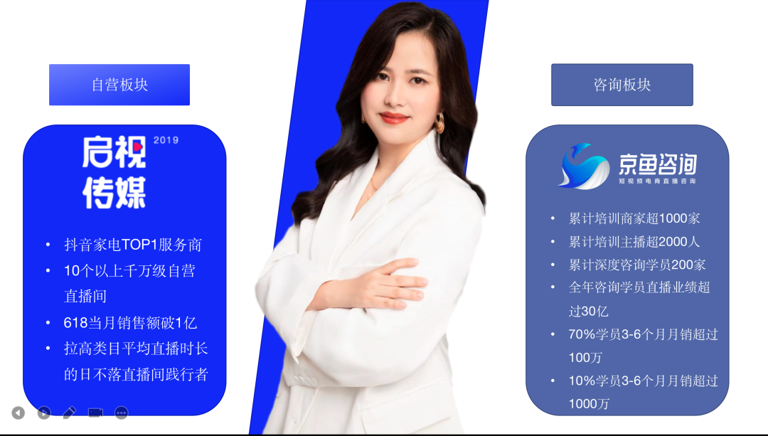 先来做自我介绍,我本身呢,已经在电商行业已经从业13年了,总共有两个公司,两个板块, 是启视传媒,做家电的启视传媒。