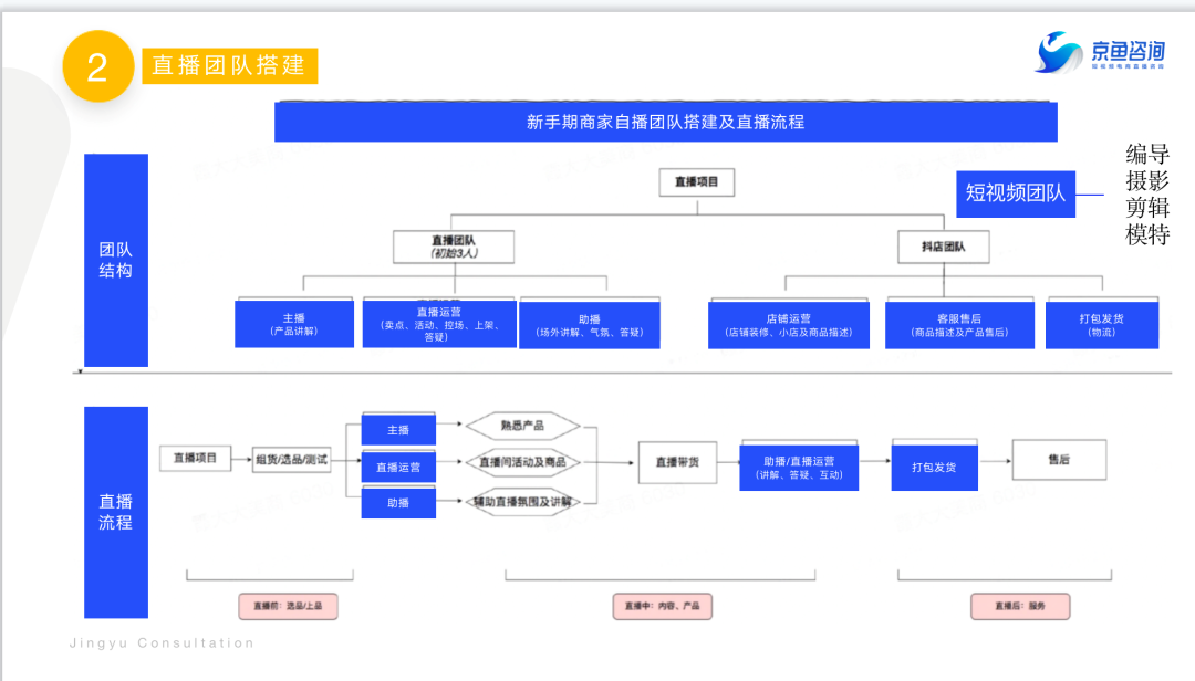 第二步就是直播的团队的搭建,在整个直播堂的搭建,它跟电商不一样。