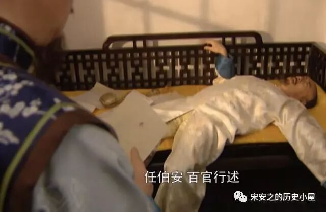 再看看康熙得知百官行述以后,全剧第一次也是仅有的一次,如此的失态,毫无帝王形象的躺在床上,还是当着臣子张廷玉的面。并且说道“腐败腐败,这怎么得了怎么得了,任伯安,百官行述,三百多个官的把柄,让人家给攥着了”。