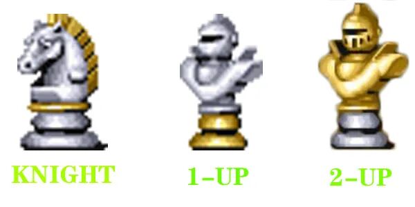 吃到骑士盘之后就会召唤出一匹马,而马鞍的颜色和玩家选用的人物(吃到骑士盘的角色)息息相关。增加了玩家的攻击距离和力量,移动方式完全改变。某些敌兵可以将你打下来,然后抢马。