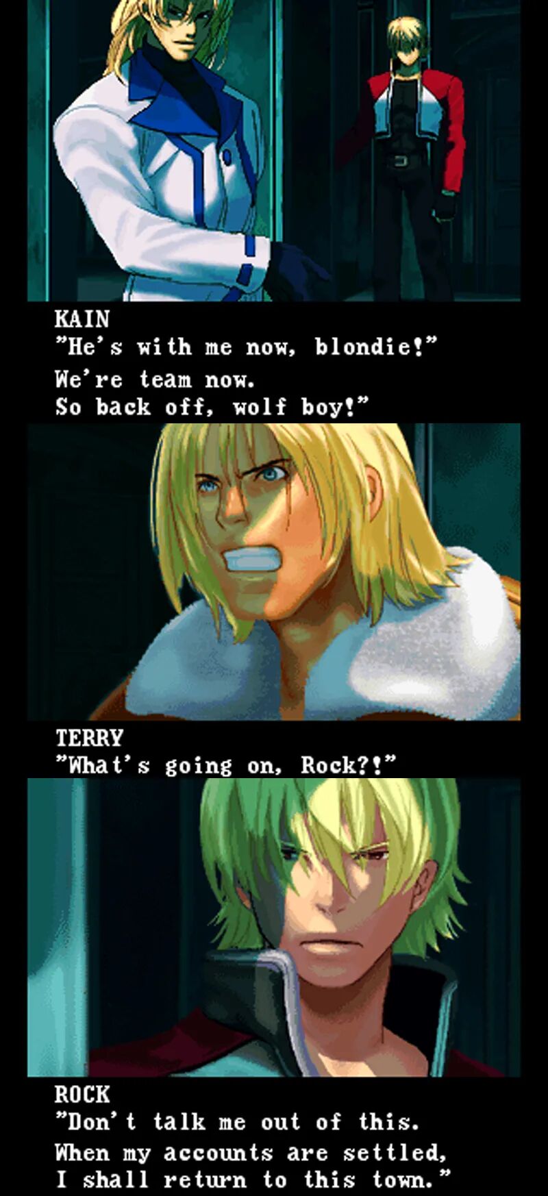 《拳皇》系列有不少人物都是来自《饿狼传说》中的,而在《饿狼传说》中则有他们各自的官方正统结局。