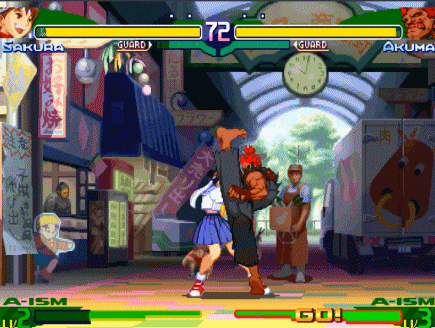 CAPCOM这边的《街头霸王3.3》BLOCKING系统,以及《街头霸王IV》的SA系统,也是比较类似“及时防御”的设定。