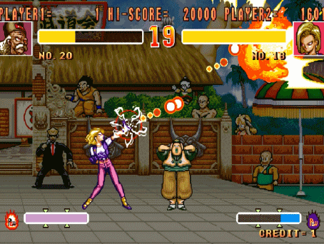 街机版发行的时间,最强大的对手是沙鲁。此时的最强必杀正是:闪光炮