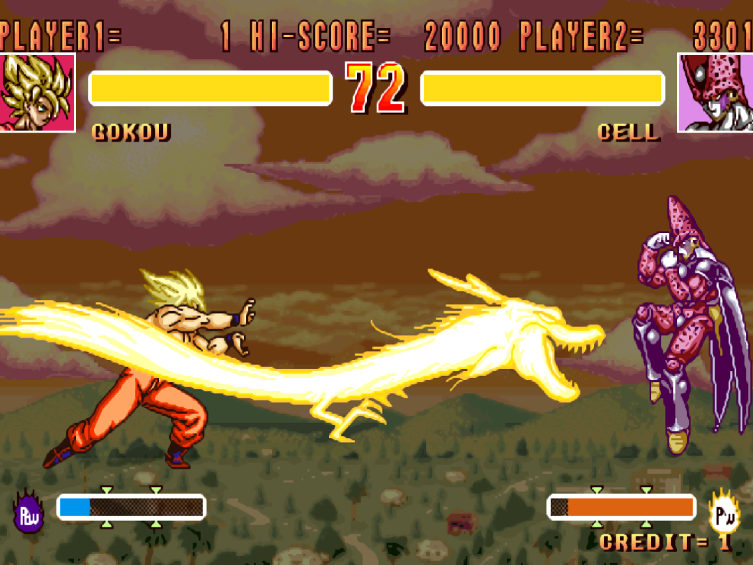 当年我们在游戏厅能够接触到的只有两款格斗游戏。其中最火爆的则是《龙珠Z超武斗大会》,对动画和漫画中的招式还原度比较高,是那个年代不可多得的精品。