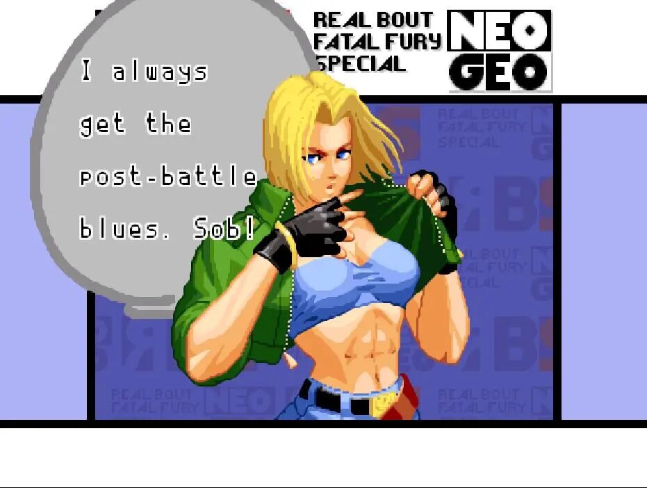 一直以来SNK这边都非常重视女性角色的培养,这在《侍魂》《龙虎之拳》和《饿狼传说》时期就已经看得出来了。