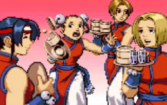 到了《拳皇99》玛丽加入了女子格斗家队伍,在通关后李香绯请客说是让大家大吃一顿,结果结账的时候发现钱没了,然后一群人全都做侍应生还钱。