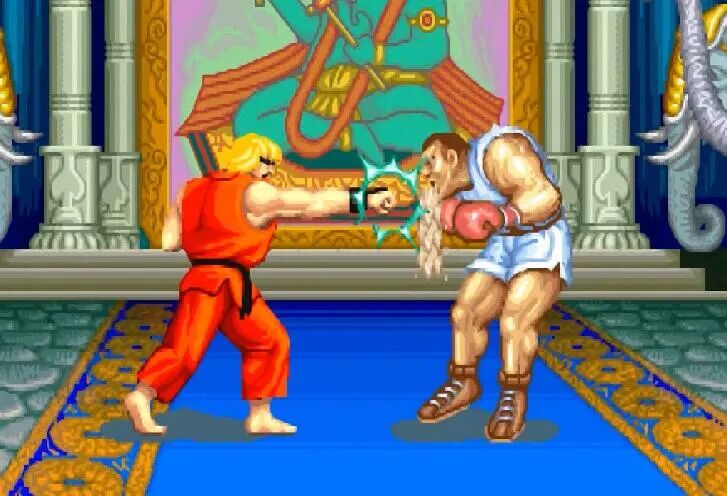 估计在很早以前大家就发现了《街头霸王2》吐血的效果吧!