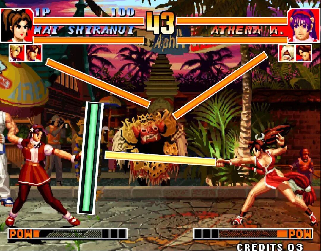 曾经见过两个97玩家,各买了一盒币挑战,最初还是各有输赢,但是玩了一会2P的心态居然崩溃,被连续干掉了好几次。