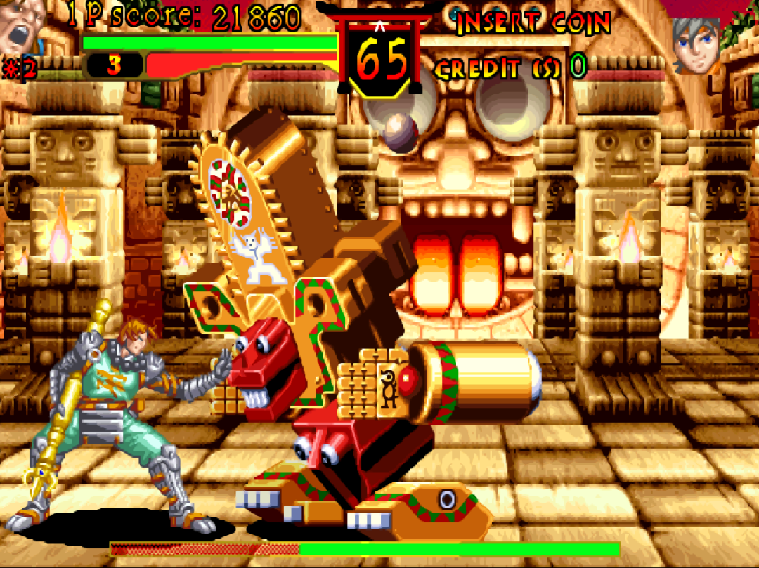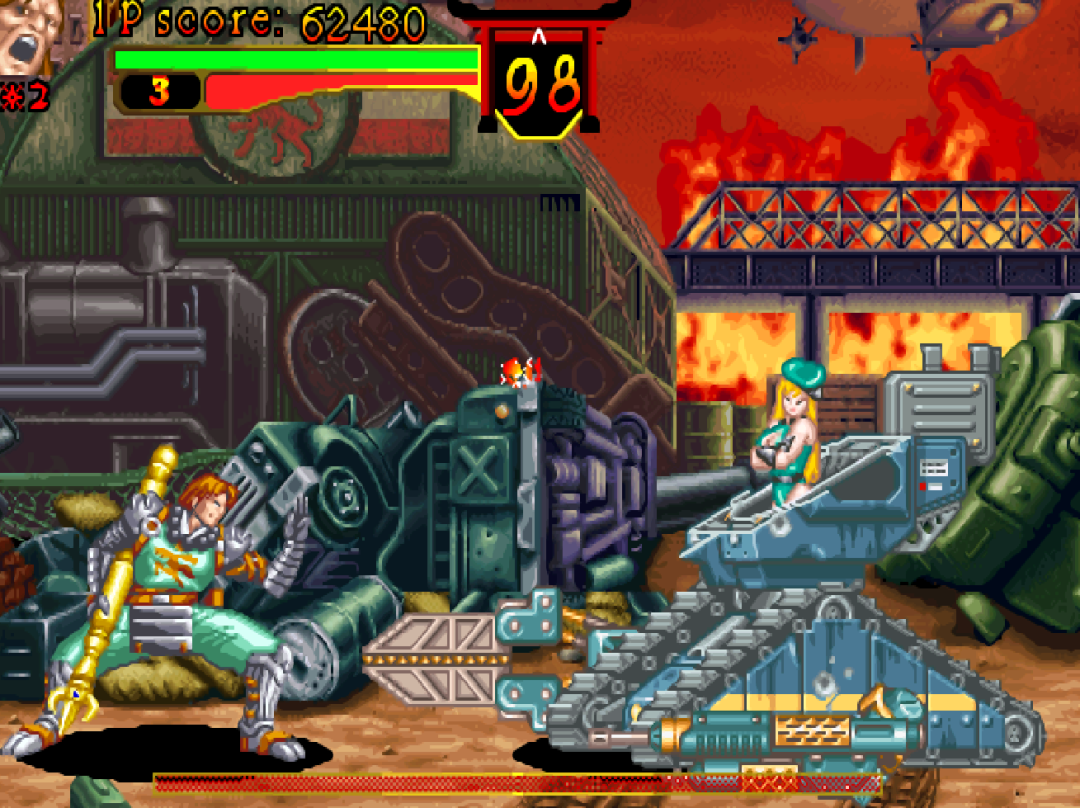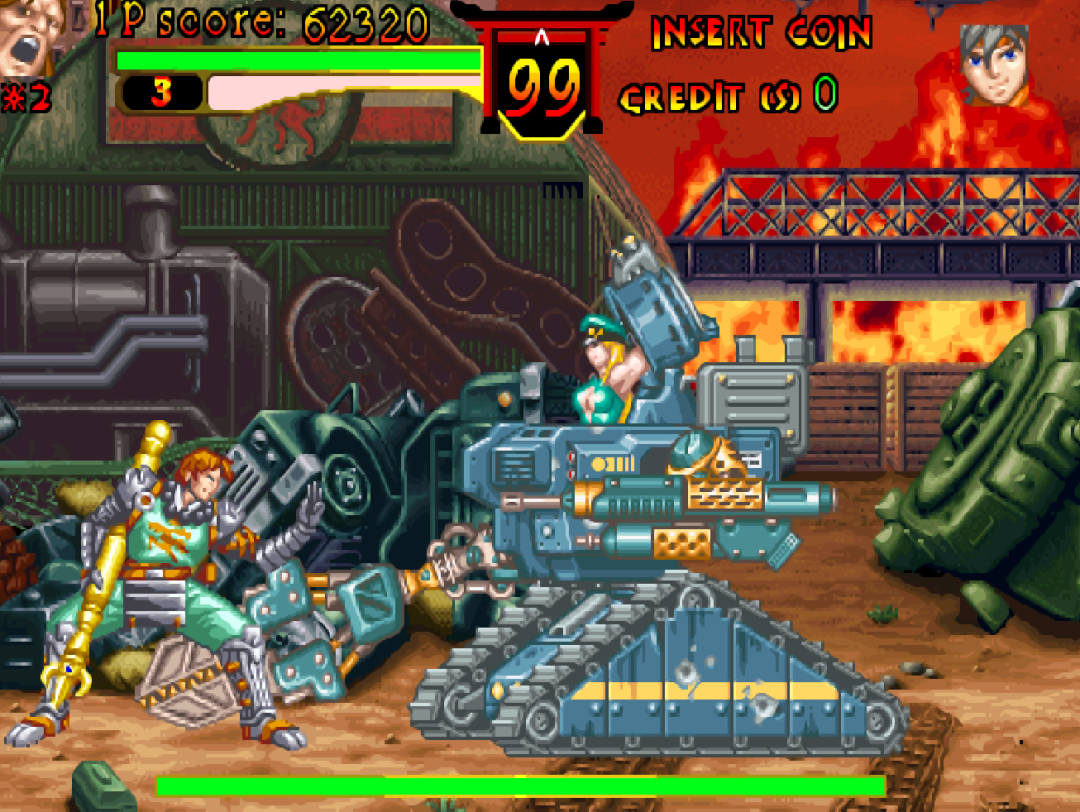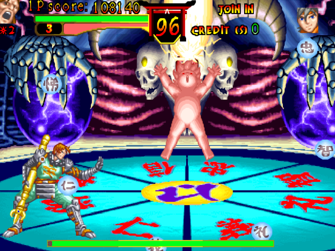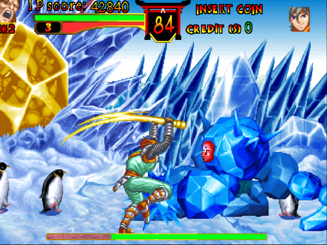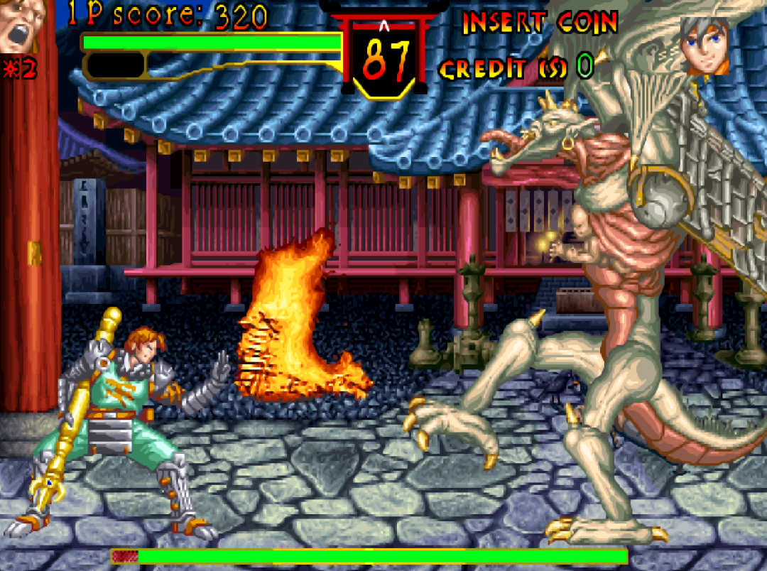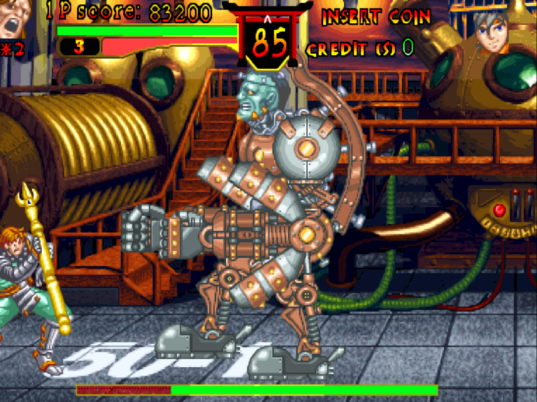 游戏厅那会第一次见到这款游戏,还以为是过关游戏玩到了BOSS处,但是看了一会发现面对的全都是BOSS。这才明白,这是一款双人合作的格斗游戏。